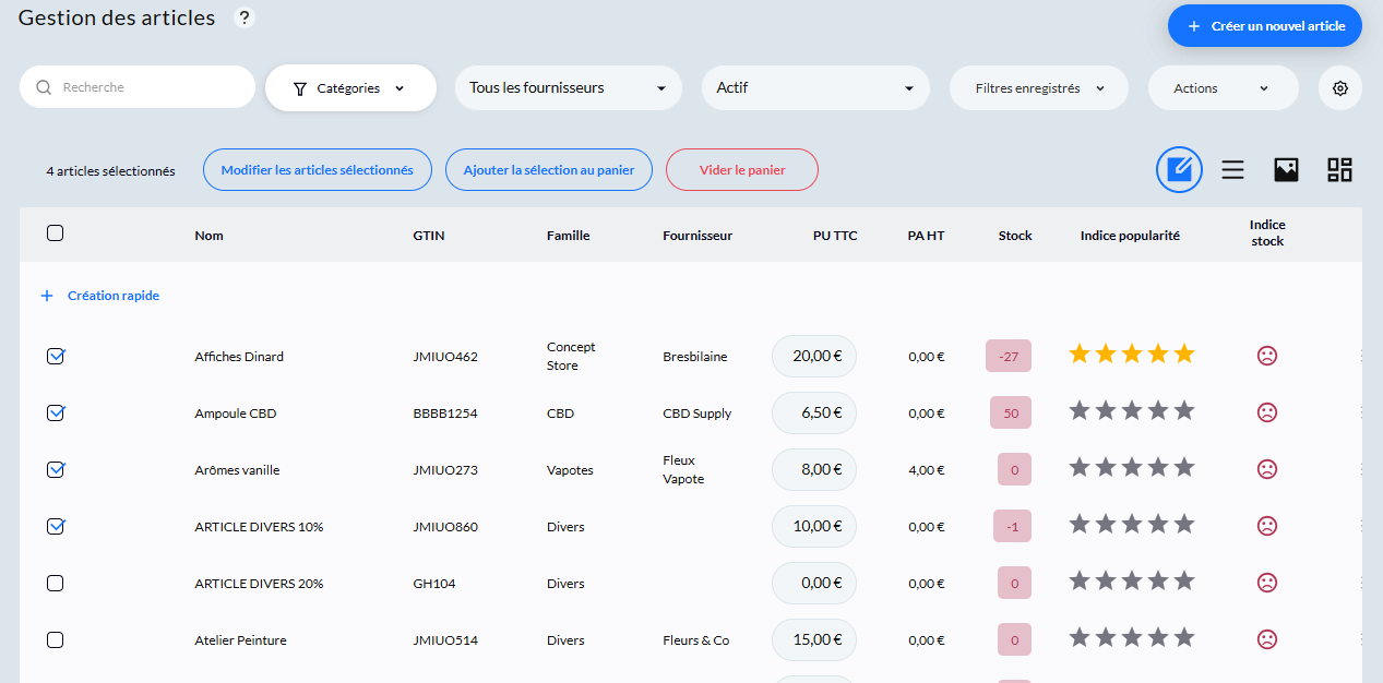 Etape 1 : Depuis votre catalogue article, sélectionnez les articles concernés
