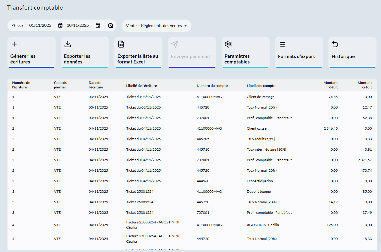 Etape 3 : Sélectionnez les exports Ventes et Règlement des ventes