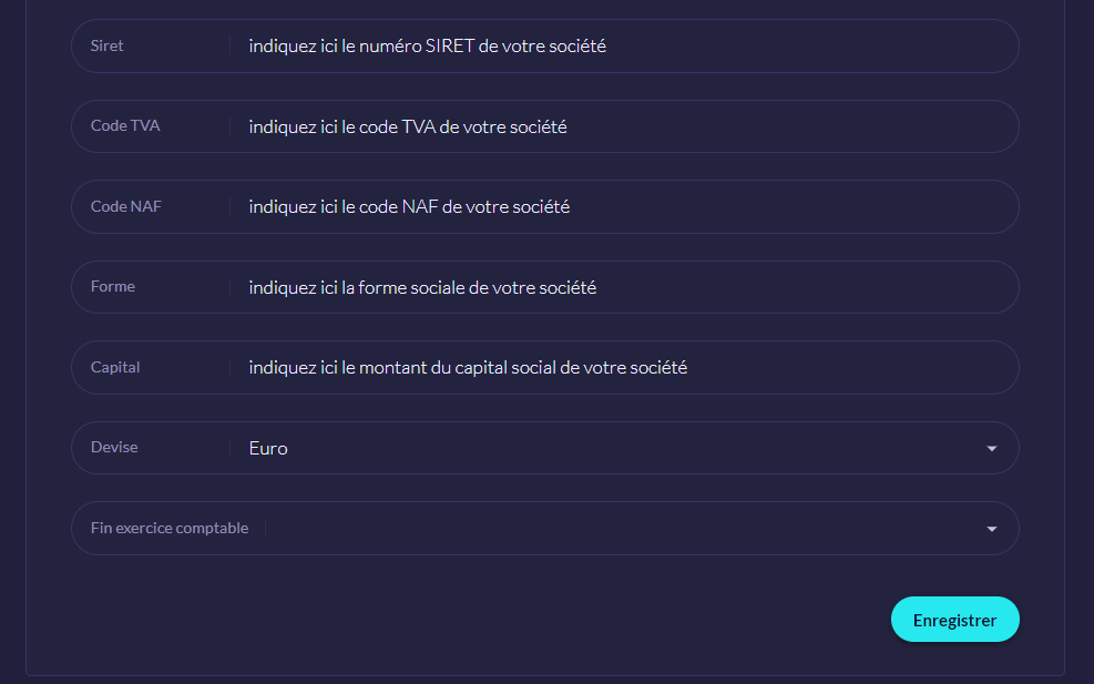 Rassemblez en amont de la configuration les éléments suivants relatifs à votre société :