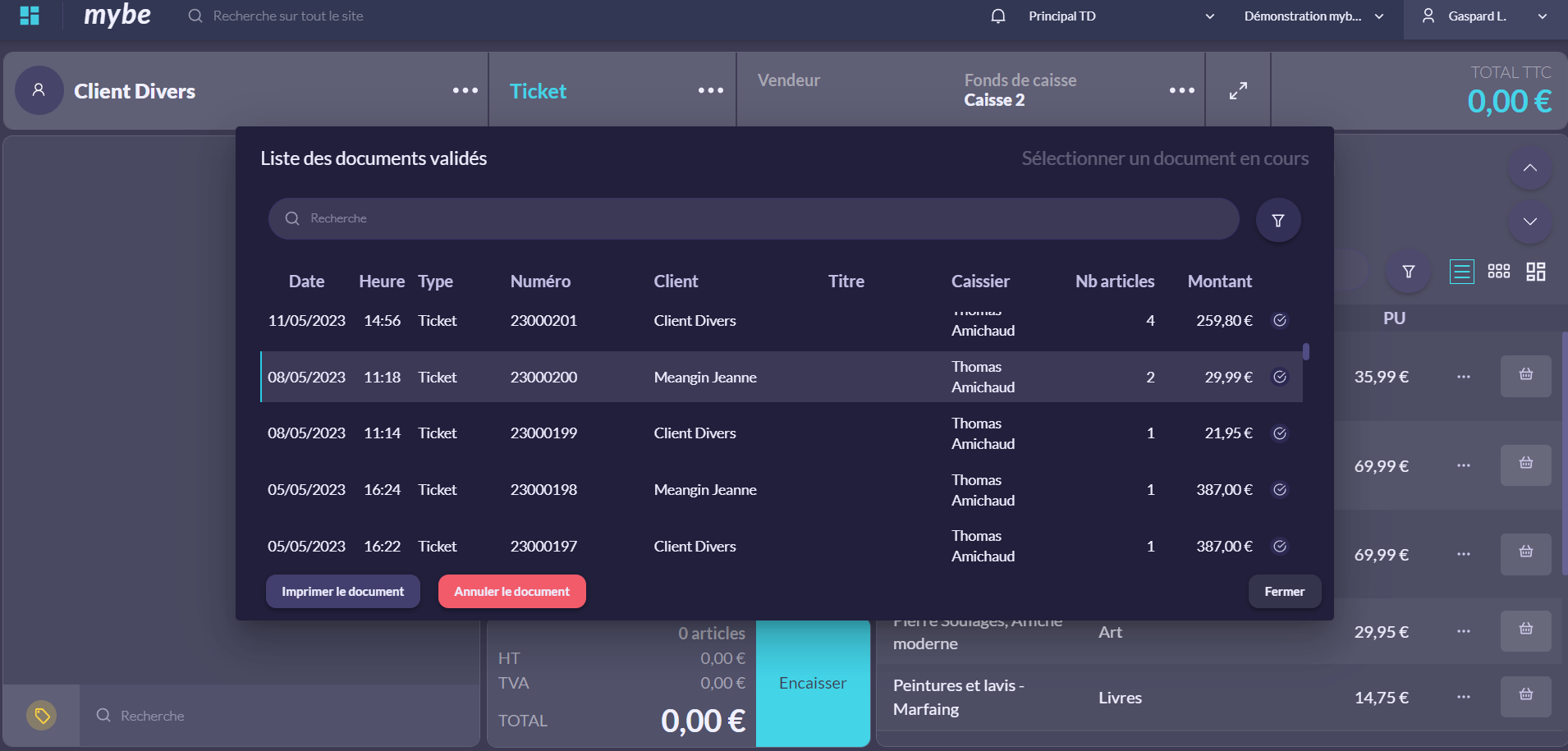 Lorsqu’un ticket de caisse a été réglé, il vous est possible de réimprimer ce dernier