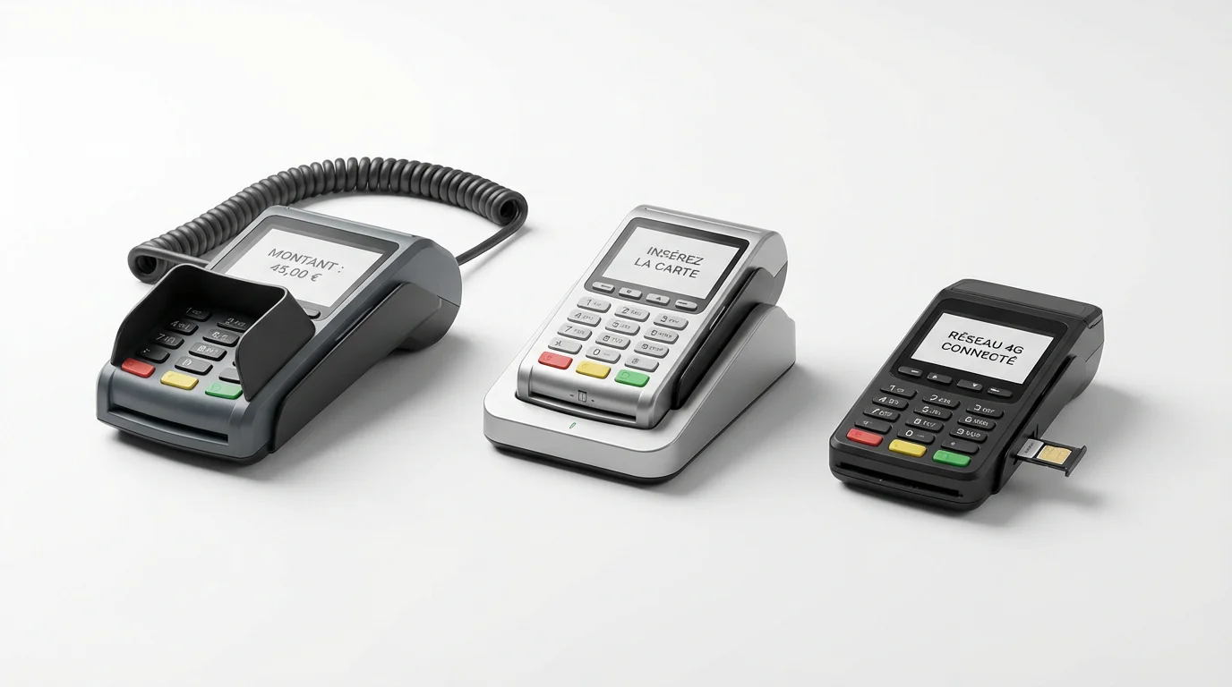 Installé au comptoir, connecté par câble Ethernet à votre box Internet, le terminal fixe offre la connexion la plus stable et la plus rapide. Il convient aux boutiques de prêt à porter, aux magasins de détail et à tout commerce avec un point d'encaissement unique. Souvent moins coûteux, il se connecte directement au logiciel de caisse, ce qui évite la double saisie des montants.